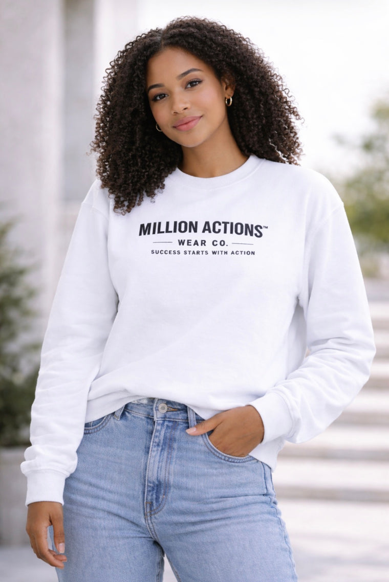 Discover the Million Actions Sweatshirt "Collection, refined" comfort built for everyday action. Designed with clean lines and premium fabrics for those who move with confidence. Built for Victory. Powered by Courage.