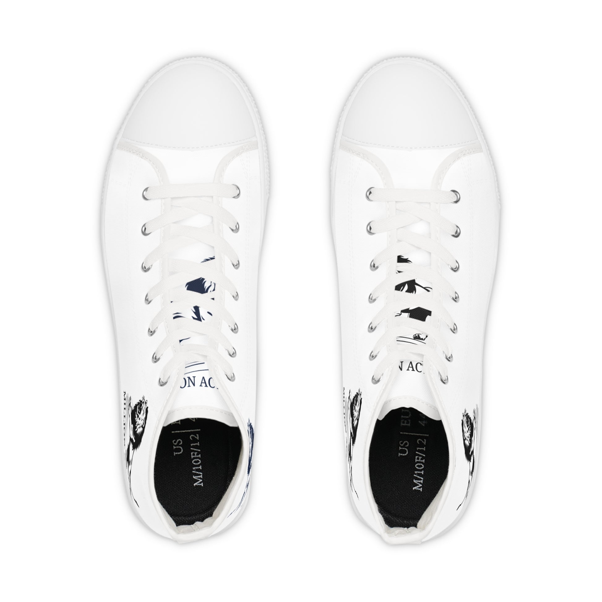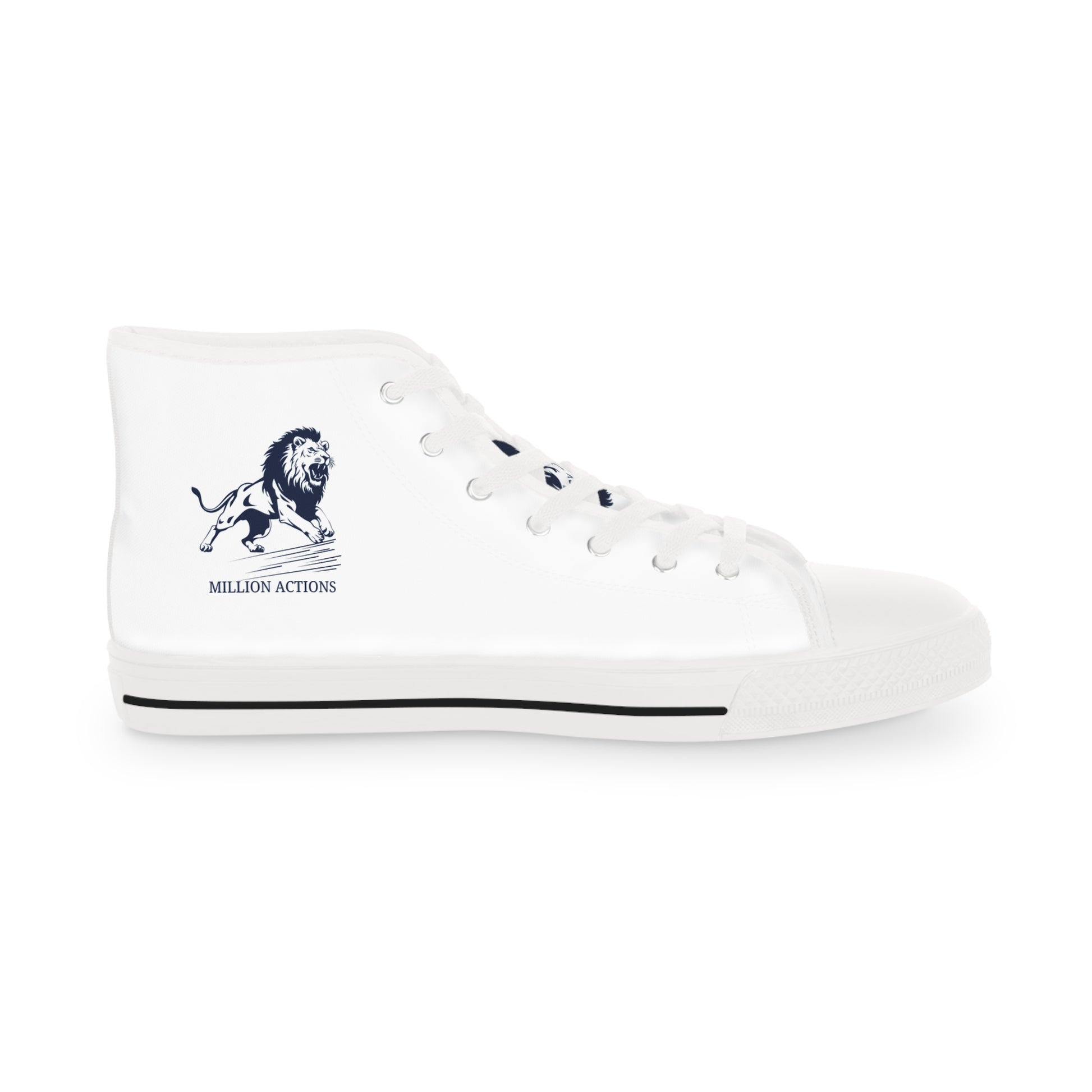 Made with breathable polyester canvas and featuring hi-poly deodorant memory foam insoles, these high top sneakers for men bear all the marks of an awesome shoe. Choose between black or white sole and laces, and enjoy the silver metal eyelets along with the lace-up closure. Add your designs and bring a bespoke staple to life.