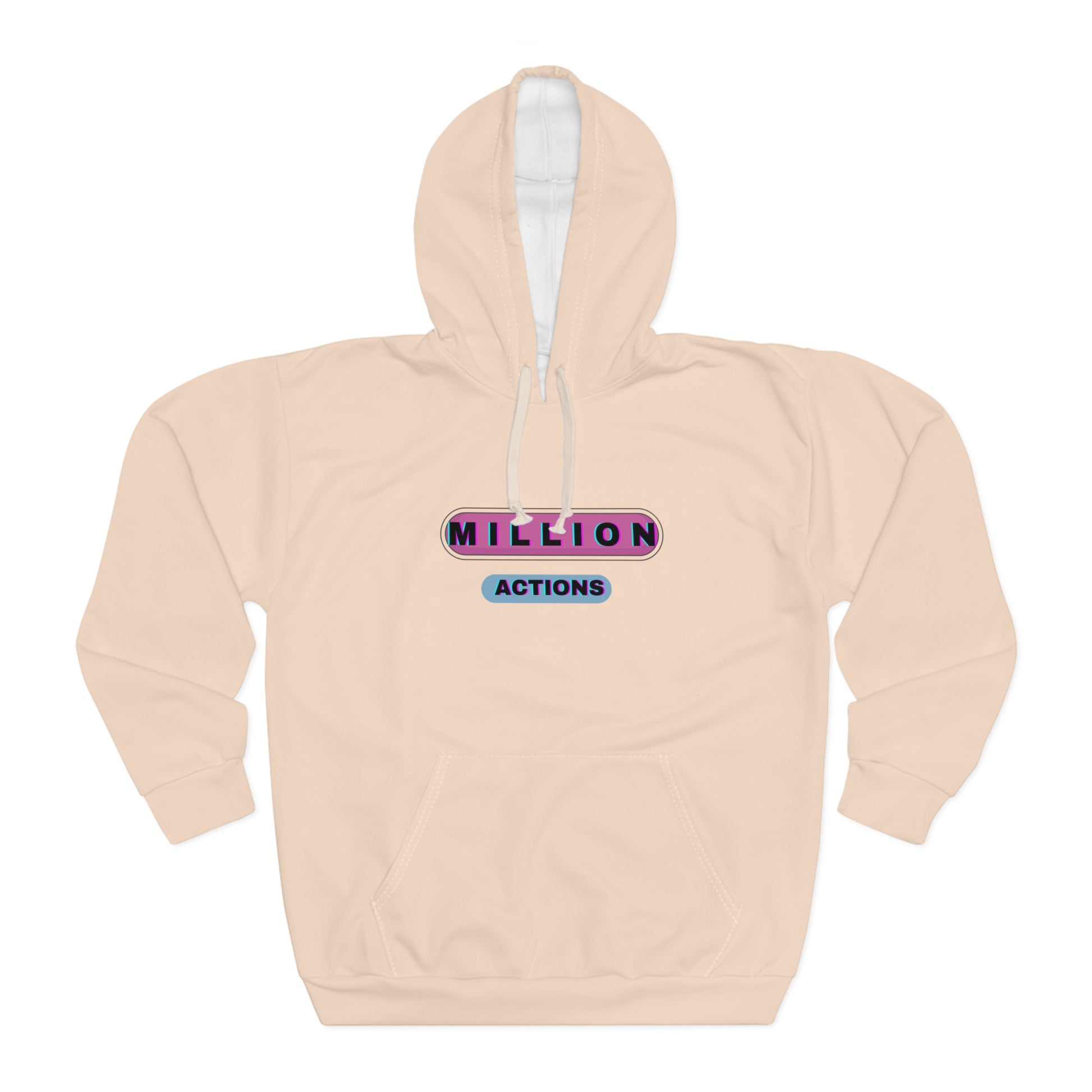 This Pullover Hoodie is made for warmth and comfort. Made to be easily customizable without white lines at the seams, this all-over print pullover hoodie is waiting for you to add a great design and it instantly becomes fashionable. It features a large front pocket, a hood with a drawstring, and is custom cut and sewn.